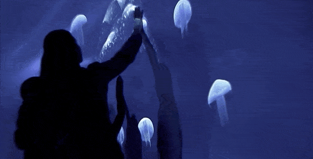 沉浸式海灣溪流體驗是一個18米長,3米高的交互式投影環境,展示了強大而溫暖的海洋,并使游客接觸到其對食物鏈和魚類養育行為的影響。