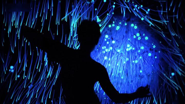 Lumin是一個受大自然啟發的生活裝置,取材于觀眾。它是黑暗洞穴中發光蠕蟲的實時模擬。它跟蹤訪客的手的位置,并將其轉換為虛擬世界中的光場和力場。這有助于創建不可見的連接,使觀眾成為藝術品的一部分。