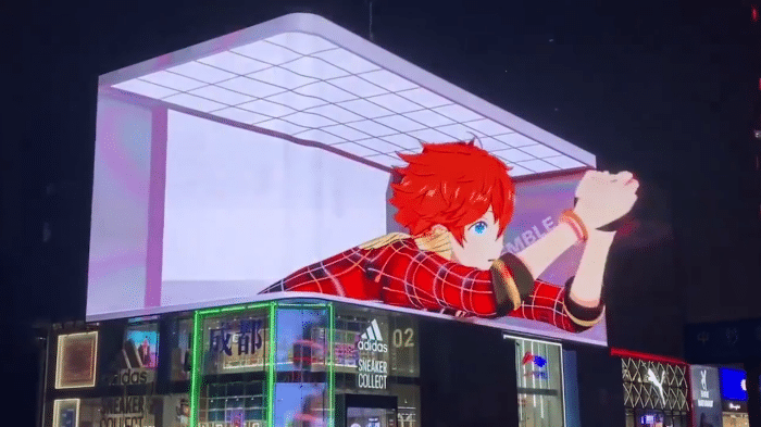 而在國內也有塊類似裝置,在成都太古里和春熙路的交界處有一塊裸眼3D屏,該屏幕大小為888平方米,為了達到溢出屏幕的效果,就連旁邊的大樓都有一部分是屏幕的一部分,而這塊屏幕經常會以裸眼3d的方式給行人帶來不同的時間體驗,有可愛的的熊貓,有要賣出屏幕的雄獅,也有要打破二次元壁壘的動漫人物,更有科技神秘的外星飛船;每一次的更新換代都會在朋友圈瘋狂刷屏,引得無數人駐足。