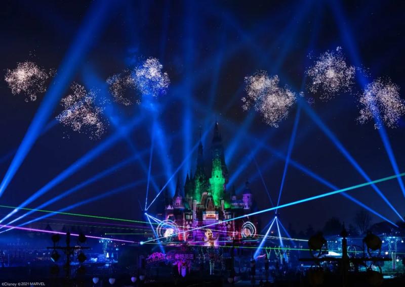 而一場奇夢之光幻影秀也是在奇幻童話城堡前進行了首演,這場生日慶典的光影秀也成為了景區的一大亮點,以全新的內容、打動人心的故事講述和全球領先的技術,以及環繞和遍布奇想花園的全方位沉浸式體驗在全球最高、最大的迪士尼城堡上演,點亮各個年齡游客心中的奇夢,激發想象和喜悅。特別值得一提的是多位漫威英雄也前來慶祝,從復仇者聯盟中的鋼鐵俠、美國隊長、綠巨人浩克、驚奇隊長、雷神索爾、黑寡婦、鷹眼和黑豹等,到銀河護衛隊中備受喜愛的樹人格魯特,這個獨家打造的章節將向多達15位漫威英雄致敬。