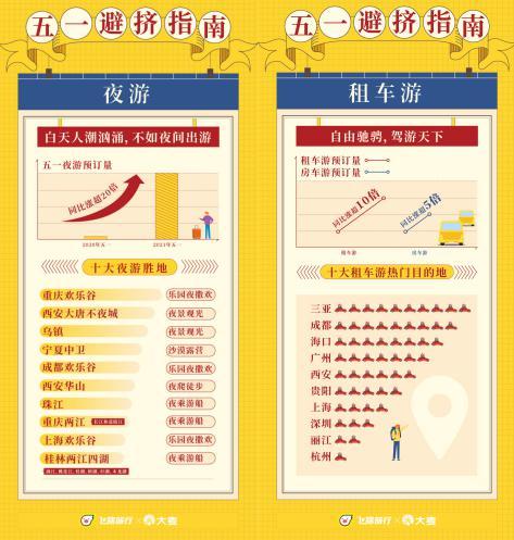 飛豬數據顯示今年的旅游成本同比較高,主要是出行交通費用上升,尤其是機票明顯價格上漲幅度偏高,所以避開熱門出港機場能夠有效降低出行成本,想比往年日間游玩的火爆,今年的夜游更受大家青睞,數據顯示五一夜游商品預訂量同比大漲超 20 倍,夜景觀光、夜游乘船、星空露營和主題樂園夜場撒歡成為年輕人夜游主選項。西安大唐不夜城、烏鎮、珠江、重慶兩江和桂林”兩江四湖”、寧夏沙漠等夜游勝地受歡迎。