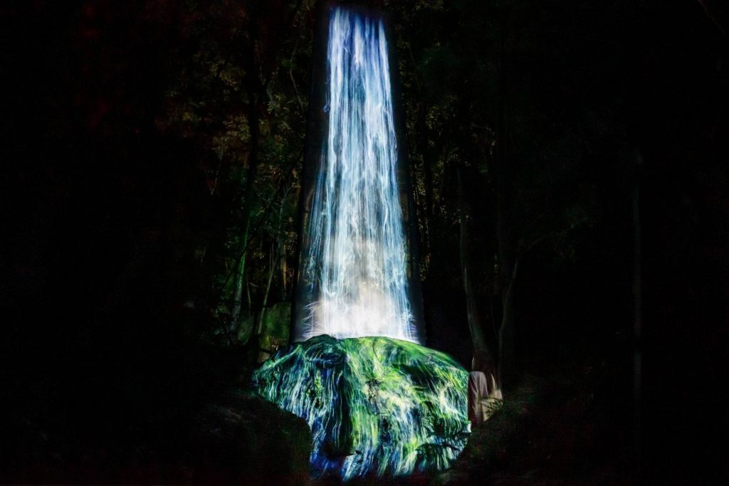 teamLab在這里舉辦著名為“Digitized Nature”的展覽,其目的是運用非物質(zhì)性的數(shù)位技術(shù)讓“大自然在自然的形態(tài)下成為藝術(shù)”。 超越了人類認知時間界限的森林和庭園,在保持其原有形態(tài)下制作而成的作品群體,能夠幫助人們超越對于時間連續(xù)性的認知界限,并認識到自己是存在于這源遠流長并不斷延綿的連續(xù)之中的場所。并且嘗試著在這里呈現(xiàn)出“漫長的生命之延續(xù)性”,從而達到在現(xiàn)代也能夠把這個場所的含義不斷承載和延續(xù)下去的目的。