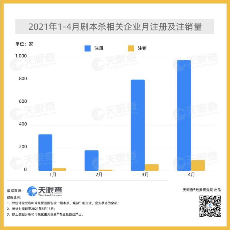 根據(jù)天眼查數(shù)據(jù)顯示,目前國內(nèi)有超過6500家名稱和經(jīng)營范圍包含“劇本殺”的企業(yè),這還只是企業(yè),據(jù)美團(tuán)數(shù)據(jù)顯示,截至2020年年底,劇本殺線下門店已突破3萬家,而在四月份閑置平臺(tái)數(shù)據(jù)顯示,四月平臺(tái)上以“倒閉了”為理由轉(zhuǎn)賣劇本、道具、門店桌椅等劇本殺商品的數(shù)量較上月增長(zhǎng)了110%,是上個(gè)月的兩倍之多,截至5月13日,我國今年已注銷近200家劇本殺相關(guān)企業(yè)。其中,4月共注銷近100家相關(guān)企業(yè),環(huán)比增長(zhǎng)102%。甚至整個(gè)數(shù)據(jù)還在繼續(xù)增長(zhǎng),廝殺仍在繼續(xù),越來越多的尾部門店開始被動(dòng)清場(chǎng)。