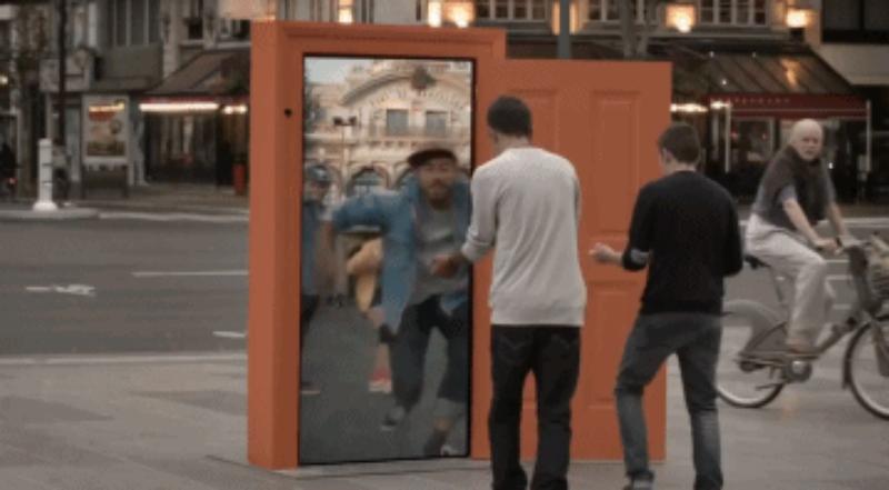 在法國的巴黎街頭有這么一扇任意門,打開它就能前往歐洲的各個城市,是不是聽起來很熟悉?沒錯這就是現實版“哆啦A夢的任意門”,這是由法國鐵路公司SNCF和TBWA合作打造的戶外藝術裝置,初衷是鼓勵人們多出去走走外出旅行,打開“任意門”你可能會直接從法國空降到米蘭廣場、巴塞隆納或者是布魯塞爾,裝置實際是在門后設置一面顯示屏。等比例顯示對應城市的風景人物,人們可以進行互動,仿佛真的來到了那個城市。