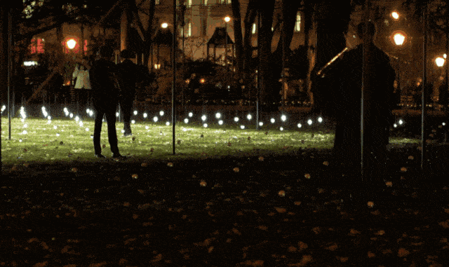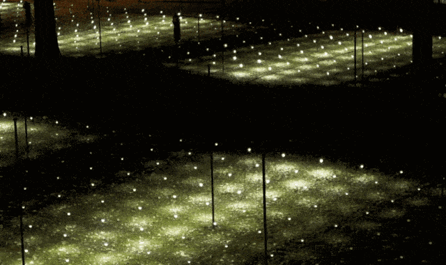 Whiteout 是奧裔美籍藝術家Erwin Redl設計的作品。中央橢圓形的草坪上懸掛著無數白色LED小燈泡,黑夜中一盞盞白燈亮起,頓時綠色的草坪上猶如夜空中的繁星一樣分布其間。
