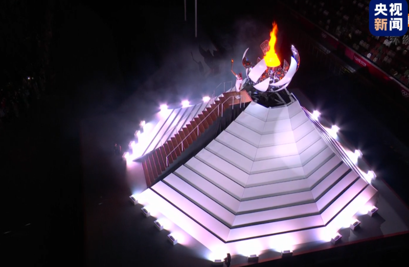 開幕式煙花絢麗多彩。煙花主要是靛藍色和白色,即東京奧運會會標(biāo)的顏色,煙花的形狀是扇形,這是日本文化中吉利的形狀。