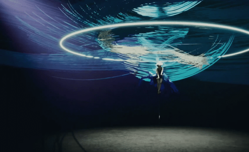 幾位演員身穿藍白色服裝,配合道具扮演各項運動標(biāo)志,通過鏡頭角度的切換與轉(zhuǎn)場,實現(xiàn)了一鏡到底的圖標(biāo)演繹。