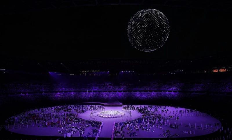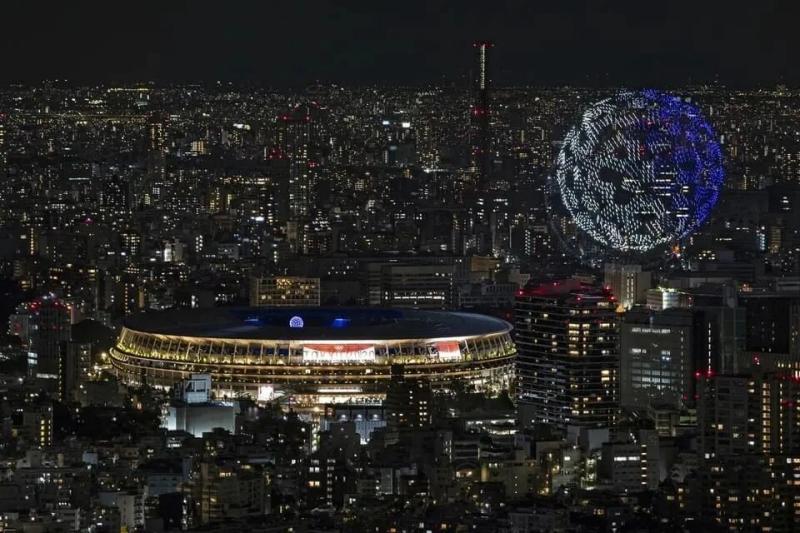 1824架無人機組成了2020東京奧運會的會徽,并與場地中央的會徽遙相呼應(yīng),科技感十足。