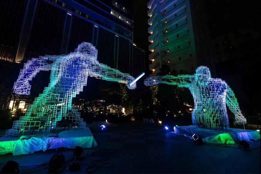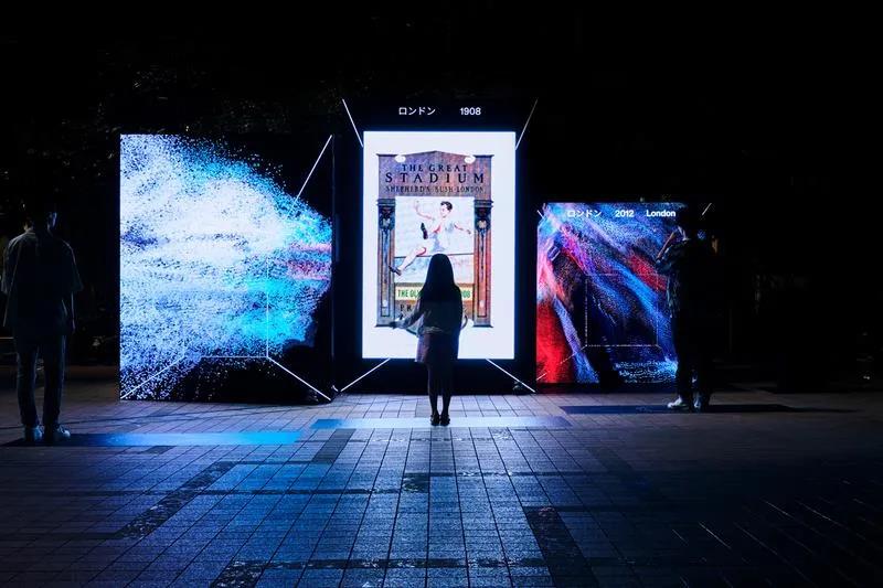其中較具代表性的作品則是藝術家Makoto Tojiki創作的照明作品Human potential, determination, solidarity and hope,以田徑接力賽為靈感,兩名接力賽選手正在傳遞接力棒,表達了奧林匹克的傳遞和團隊合作的精神;同時還有Moment Factory的交互裝置作品Podium Memories,以以解構領獎臺為特點,和觀眾一起分享獲獎的喜悅。