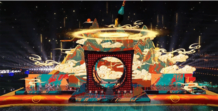 2021年央視七夕晚會,是在孕育了牛郎織女傳說的西安昆明池七夕公園錄制。夜幕下,天為幕,水為臺,將AR、kinect實時動捕、新媒體互動裝置等數字創意與節目融合,在寓意“天圓地方”古樸哲學觀念的數字創意舞臺造型上,運用國漫、國潮元素打造呈現中國人特有的浪漫文化。