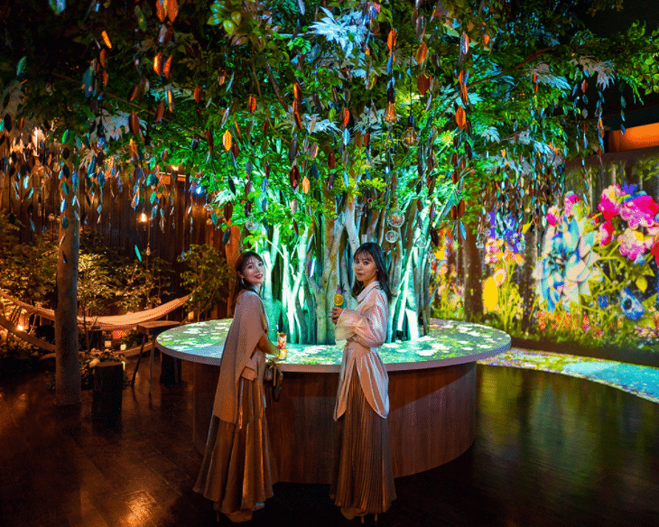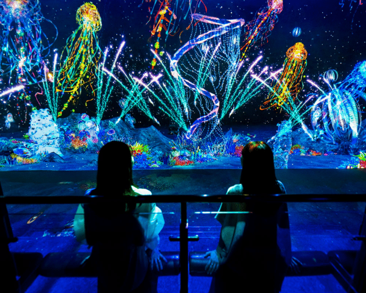 該體驗館定義為旅游景點,共分為6大區域,分別以花、森林、海洋、宇宙、音樂燈光、運動為六大主題,游客可以在不同的區域分別體驗不同主題世界的魅力,體驗各種數字科技融合而成了奇妙空間。
