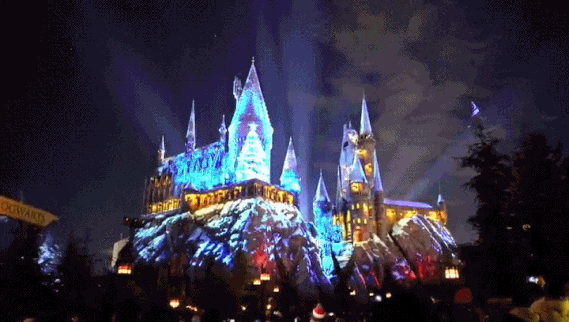晚上8:00后,這里還有一項(xiàng)非常值得期待的事情——霍格沃茨城堡的夜間燈光秀慶典。以四大學(xué)院為主題的年度慶典盛宴在這里交匯,數(shù)字創(chuàng)意賦能壯觀的哈利波特神秘城堡,投影出極為璀璨的光影秀,配合樂(lè)隊(duì)、煙火,必定烙下難忘的體驗(yàn)記憶點(diǎn)。