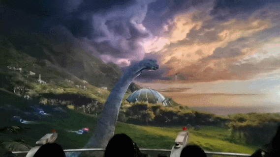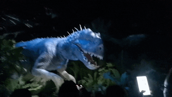 環(huán)球影城其他地方都有侏羅紀(jì)公園的園區(qū),但北京環(huán)影是首次選用侏羅紀(jì)世紀(jì)電影為主題背景,以藍(lán)色系為主,通過(guò)數(shù)字多媒體投影技術(shù),生生將整座主題區(qū)原版復(fù)刻成侏羅紀(jì)世界努布拉島的場(chǎng)景,恐龍仿佛就在眼前。