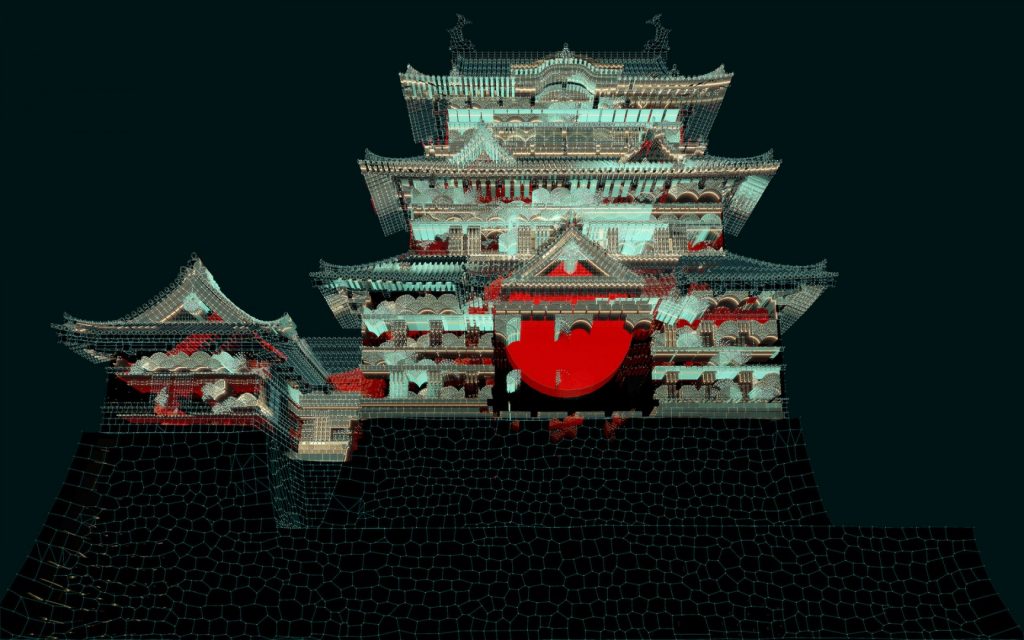此外Yann Nguema19年還在日本的小田原城創(chuàng)作了建筑投影,作品以日本國旗為靈感,融合了大量傳統(tǒng)和現(xiàn)代的圖形在投影中,一分鐘的投影內(nèi)容展現(xiàn)出了小田原城500 多年的歷史文明,其中一圈圈的漣漪仿佛像櫻花般凋落和重生,以此表達這座百年建筑生生不息的精神。