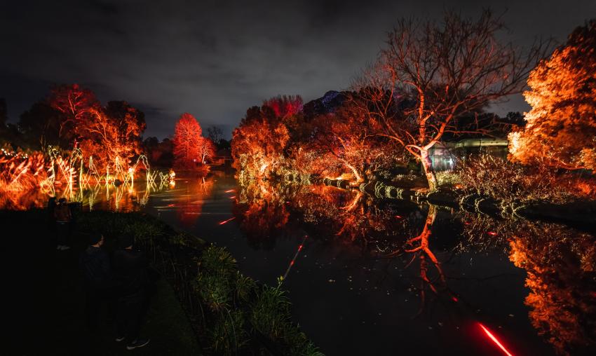 《Light Cycles》匯集了為場(chǎng)地定制并改編自Moment Factory劇目中的經(jīng)驗(yàn)的混合概念,例如水晶橋美國(guó)藝術(shù)博物館屢獲殊榮的North Forest Lights和Lumina Night Walk(夜游)系列。阿德萊德植物園變成奇妙的燈光森林,將自然和想象力融合在一起,使古老的阿德萊德植物園在冬季煥發(fā)活力,成為本地和國(guó)際合作的典范以及探索未來(lái)技術(shù)與創(chuàng)意產(chǎn)業(yè)結(jié)合的沉浸式體驗(yàn)新亮點(diǎn)。