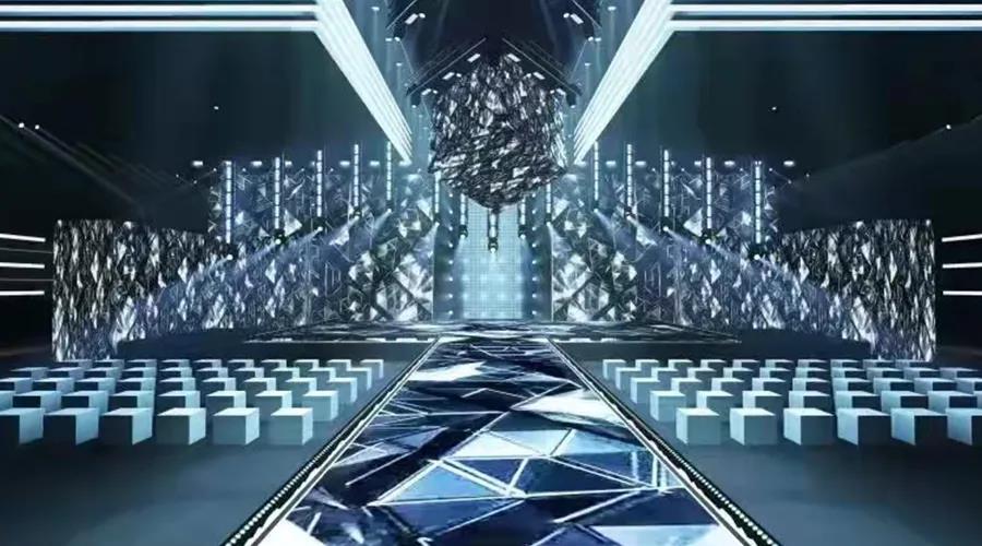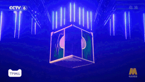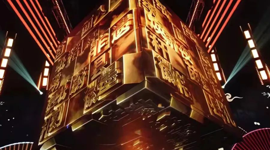 在舞臺設計整體制作上,它以非遺文化為內核,采用開合背景大屏與兩側包圍式的側屏形式烘托起中央具有裸眼3D效果的升降魔方,LED地屏與頂部旋轉燈架相互配合背景屏幕影像與地面倒映交相輝映,締造傳統與潮流相結合的數字舞臺視覺。
