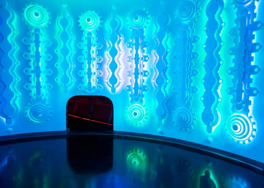 這里的一切都充滿著神圣的韻味,你看,穹頂處數字創意投影出的旋渦,說明“Eenia”正在努力與地球上的其他地方重新建立聯系。