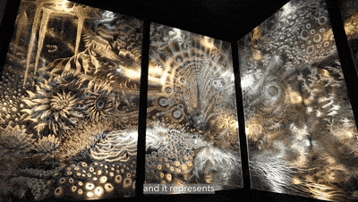 《Projected Desert》是一個人400平方米的數字藝術人工沙漠峽谷,起伏的峽谷壁高達11米,展示內容是以沙丘、沙漠植物、綠洲等為元素的“沙漠場景”。