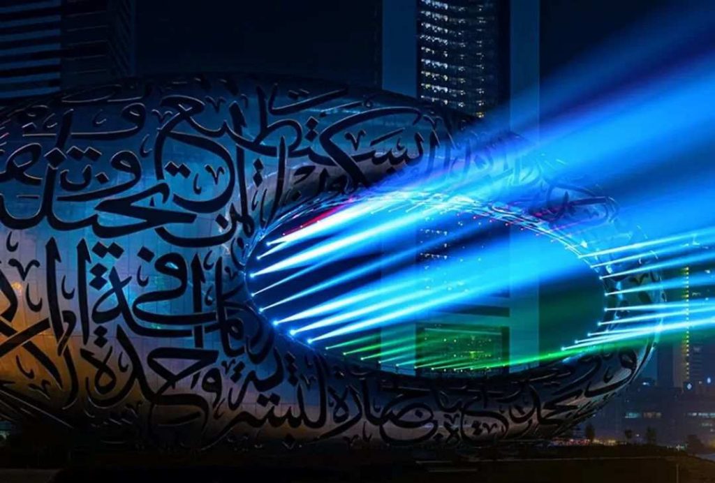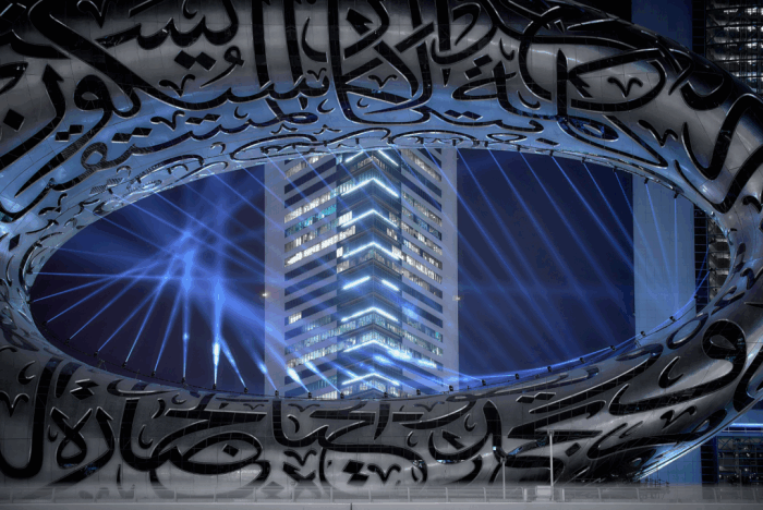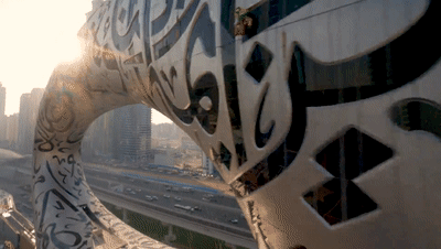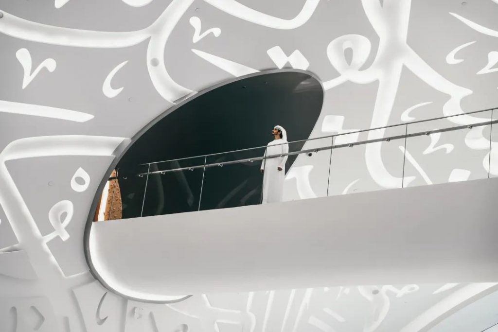 錯綜復雜的阿拉伯文字詩歌以3D技術打印在建筑表層,表達了對未來發展的美好愿景。