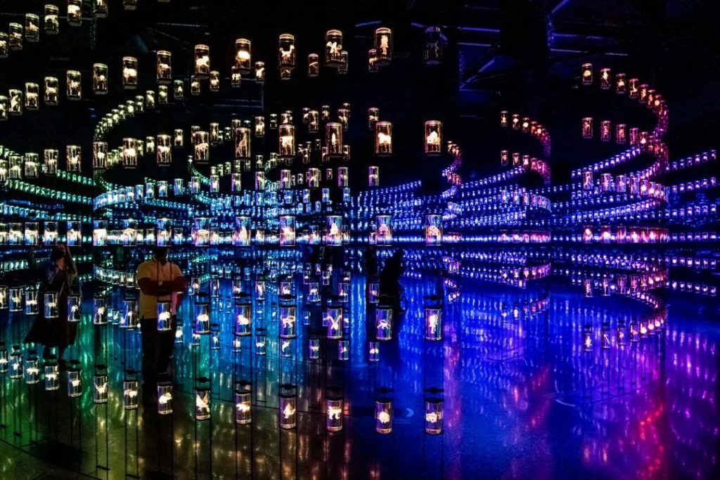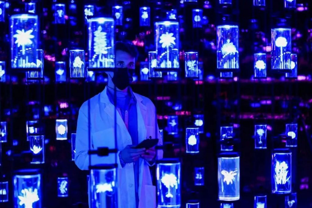 未來博物館在極具科幻感的數字創意燈光秀中開幕;外太空、生態系統、生物工程等未來領域的想象被一一呈現。