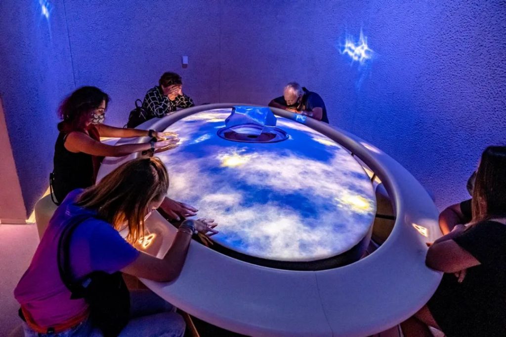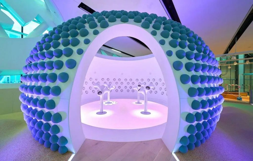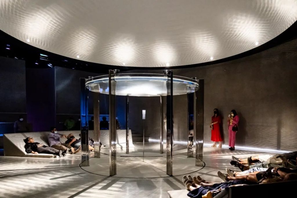 這里有著各類適合享受和冥想的沉浸式場所,比如水波和光紋晃動的房間,細沙在身邊緩緩流淌的房間。