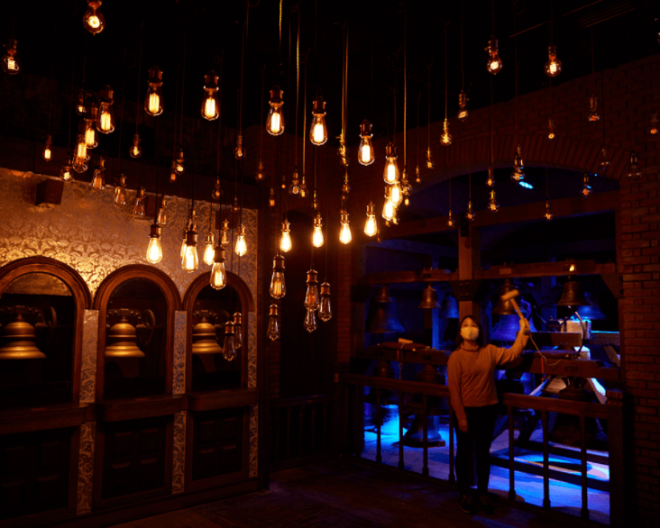 可隨意敲擊鈴鐺,自由地創造光,實現聲光同步互動的游樂體驗。
