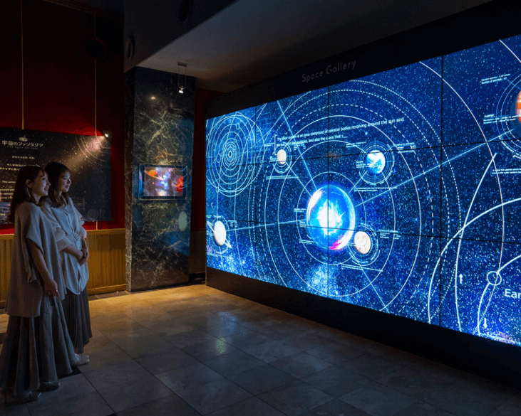 “宇宙幻想曲”由太空畫廊、控制室以及光之星系組成。宇宙飛船中的AI系統已經做好陪游客進入外太空的準備。