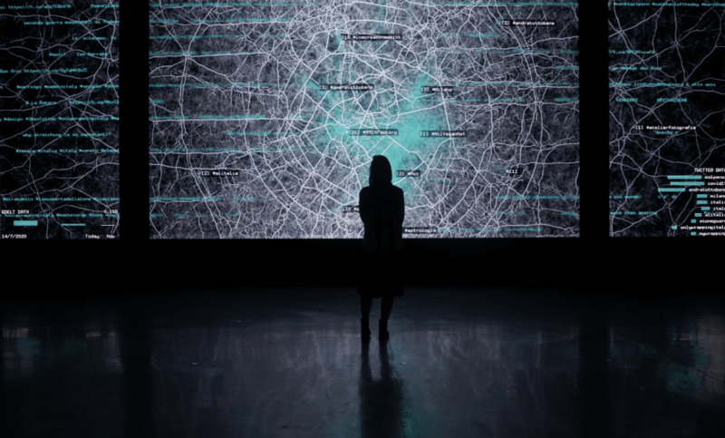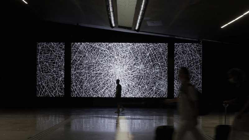 “Falin Mynd”是由來自意大利的藝術團隊fuse *創作的視聽裝置,該裝置攝影領域的潛像概念中汲取靈感:光在膠片上留下的無形印記,只有在膠片顯影后才會顯現出來,游客生成的數據生成抽象的數字景觀,留下他們實時分析和解釋的痕跡。通過這種方式,作品使個人與社區之間的不解之緣可見,突出了兩個實體如何相互影響,改變了對我們周圍由地點、人物、顏色和感覺組成的現實的感知。因此,這些數據構成了城市的無形圖像。