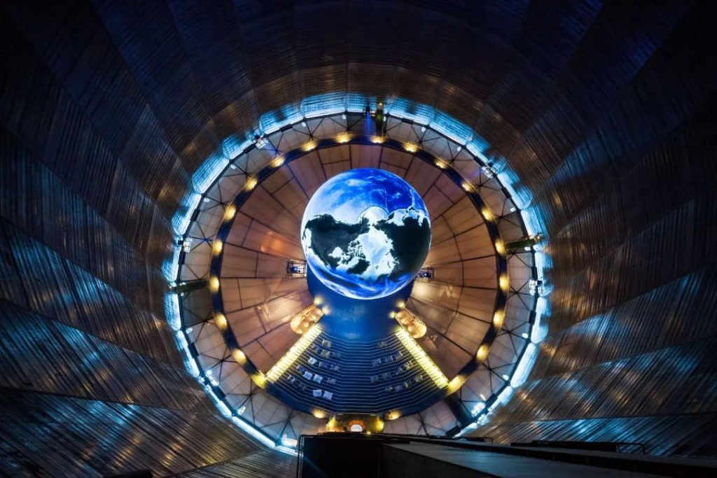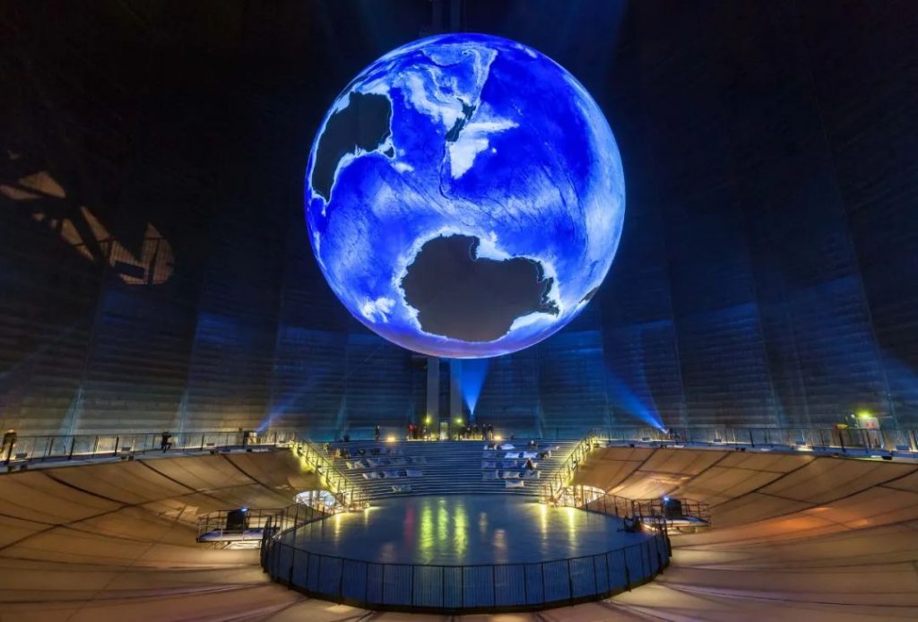 這個巨大的球面投影讓游客可以從宇航員的角度,體驗地球迷人的氣候變化和壯觀的晝夜交替。這些景觀懸掛在100米高的展廳中央。抬頭看,宇宙、地球的快速變化非常接近。