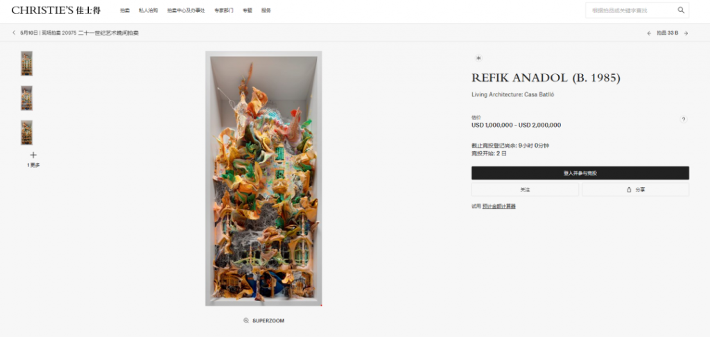 作品將于5月10日在美國佳士得拍賣行(Christie’s)進行拍賣。這是首個世界遺產單位開發的數字藝術作品進行NFT數字版權拍賣會,估價100萬至200萬美元。