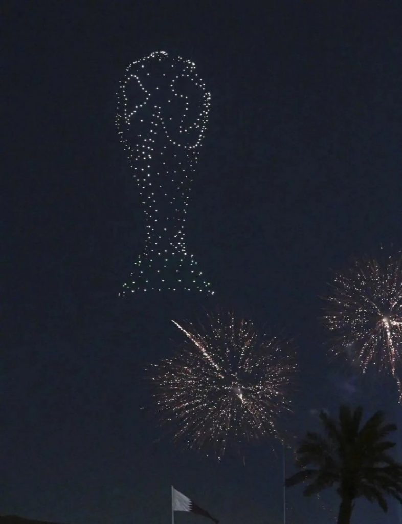 在開幕式前一晚當(dāng)?shù)貢r間11月19日晚,國際足聯(lián)球迷嘉年華開幕。海濱大道秒變“秀場”,無人機(jī)演繹動態(tài)燈光秀,球員街頭踢球與球迷友好握手。最壯觀的是,煙花秀搭配無人機(jī)表演“卡塔爾歡迎你”。
