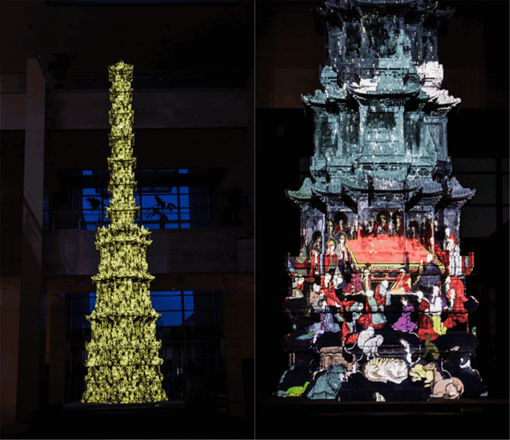 作為歷史之路上著名攝影區(qū)的中心,敬天寺十層石塔是博物館最受歡迎和標志性的亮點之一。在這一令人激動的新景象中,寶塔雕刻中的故事,如《西游記》和《佛陀生平》,在耀眼的燈光下被重新演繹。