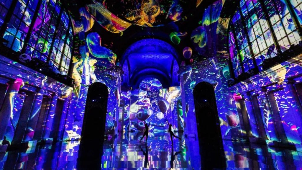 Culturespaces是法國著名的博物館與展陳工作室。他們將位于法國第二次世界大戰(zhàn)的潛艇基地改建成了世界最大的數(shù)字藝術(shù)中心—光之水池(Bassins de Lumières)。展館空間總投影面積為12,000平方米,多達90臺視頻投影儀和80個揚聲器,用來呈現(xiàn)藝術(shù)家的作品。