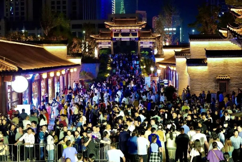 通江縣高明湖夜間經(jīng)濟(jì)文旅融合發(fā)展示范項(xiàng)目「通江花月夜」沉浸式文商旅小鎮(zhèn)于五一盛大開業(yè)。