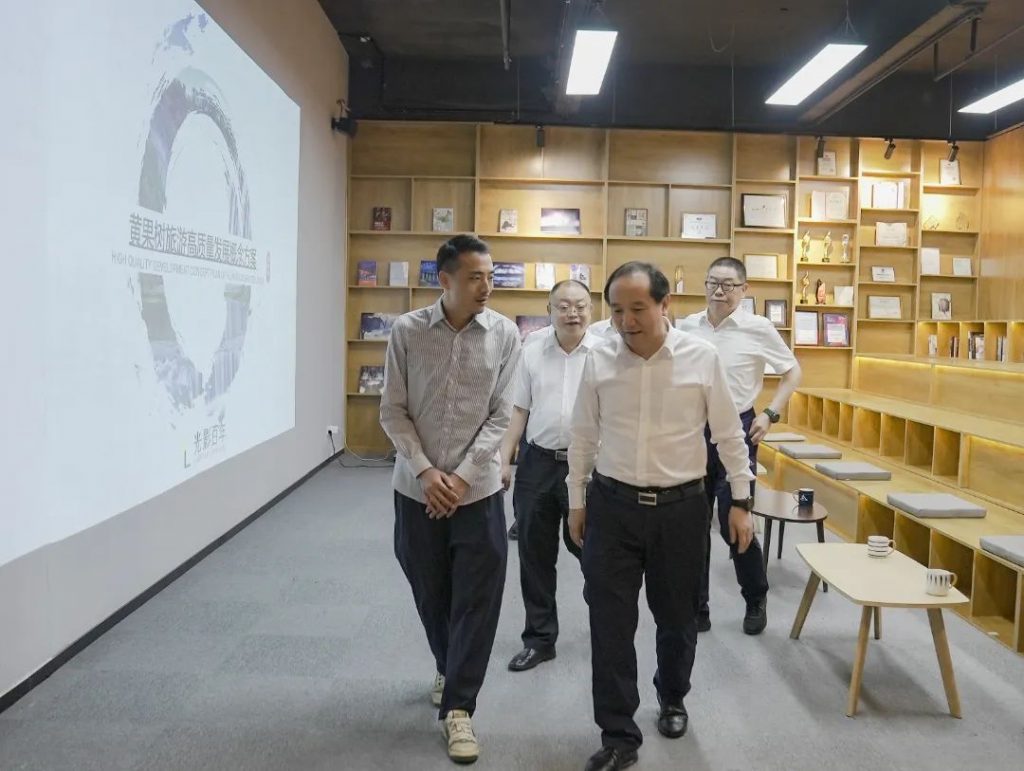 光影百年首席創(chuàng)意官黃浩先生在交流中表示:在當下做文化,需要用人們喜聞樂見的方式方法去呈現(xiàn),做好文化頂層設計,做好文化沉浸式體驗,進而講好文化故事,傳遞好文化精神。楊昌鵬書記等領導,對光影百年關于黃果樹旅游業(yè)態(tài)高質量發(fā)展的概念暢想,表示了肯定并就有關業(yè)態(tài)進行了詳細交流;對光影百年于數(shù)字文化創(chuàng)意領域上的核心創(chuàng)作理念及創(chuàng)新創(chuàng)意能力給予了高度認可,并鼓勵光影百年能繼續(xù)保持,持續(xù)成長。