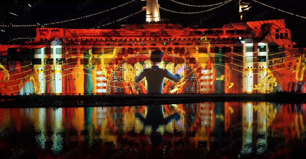 3D技術(shù)的引入使得燈光秀更加震撼。通過使用投影技術(shù),建筑物的表面成為了巨大的畫布,藝術(shù)家們可以在其上展示無限創(chuàng)意。無論是在建筑的外墻上呈現(xiàn)出栩栩如生的動態(tài)圖像,還是通過投影映射在建筑的立面上創(chuàng)造出虛擬的景觀,3D燈光秀為建筑注入了新的生命。觀眾不再僅僅是看到建筑,而是被引導(dǎo)進(jìn)入一個充滿魔幻色彩的世界。