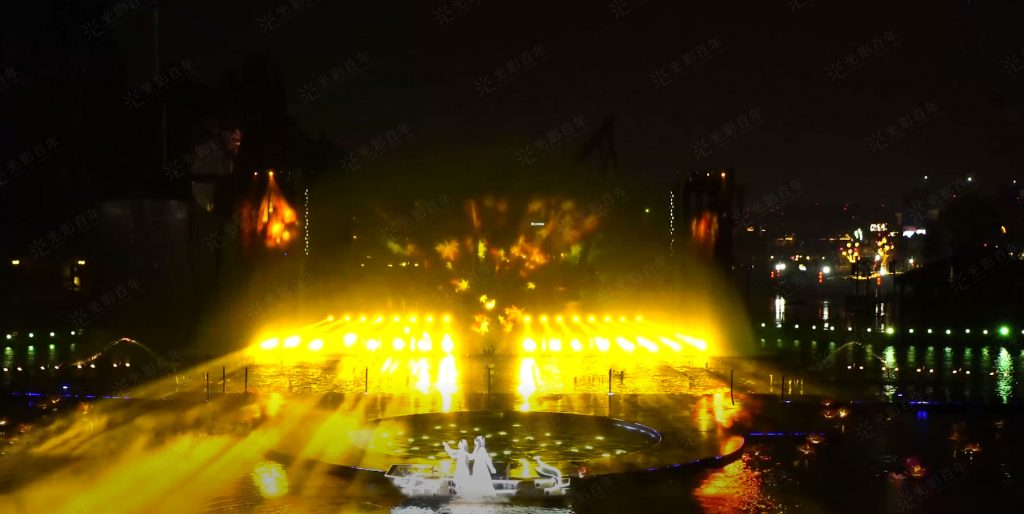 水上燈光秀是一種通過在水面上設置燈光設備,結合音樂、影像等元素,呈現出絢麗多彩的藝術表演。這種設計利用水面的倒影,將燈光的色彩和圖案投射到湖面上,創造出一個夢幻般的視覺效果。基于先進的投影技術和水下燈光設備,水上燈光秀成為夜間湖景的一大迷人亮點。