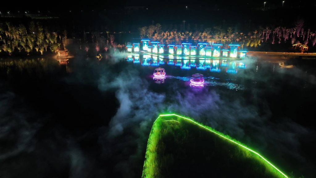 水上漂流是一種讓游客在水面上漂流游覽的體驗項目。在夜晚,水上漂流可以通過燈光、音樂等元素營造出浪漫的氛圍,讓游客感受到夜間水域的神秘和迷人之處。游客可以坐在船上,悠然漂流,欣賞夜色中的美景,享受身臨其境的夜間水上之旅。