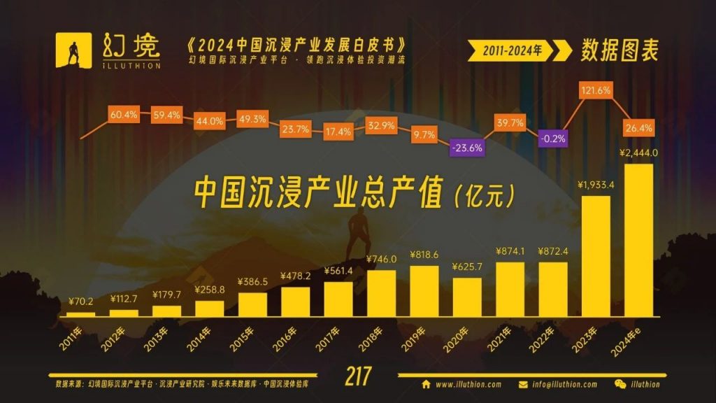 《2024中國(guó)沉浸產(chǎn)業(yè)發(fā)展白皮書》已向世人宣布,中國(guó)沉浸產(chǎn)業(yè)的發(fā)展勢(shì)頭強(qiáng)勁。截至2023年,中國(guó)沉浸體驗(yàn)項(xiàng)目數(shù)量已達(dá)32024個(gè),創(chuàng)造了近92.8萬個(gè)就業(yè)崗位。市場(chǎng)規(guī)模達(dá)到927億元人民幣,總產(chǎn)值更是高達(dá)1933.4億元人民幣。這龐大的市場(chǎng)體量揭示了巨大的潛力與價(jià)值。同時(shí),我們也必須清晰地看到,全球沉浸產(chǎn)業(yè)和中國(guó)沉浸產(chǎn)業(yè)正朝著不同方向邁進(jìn):全球沉浸產(chǎn)業(yè)的焦點(diǎn)正轉(zhuǎn)向強(qiáng)化敘事深度和促進(jìn)認(rèn)知轉(zhuǎn)變,而中國(guó)市場(chǎng)在文化表達(dá)和商業(yè)模式創(chuàng)新上表現(xiàn)突出。這并非孰優(yōu)孰劣的問題,而是揭示了一個(gè)融合發(fā)展的契機(jī)——如何將中國(guó)獨(dú)特的文化底蘊(yùn)和商業(yè)智慧,與全球領(lǐng)先的敘事技巧和情感連接能力相結(jié)合?