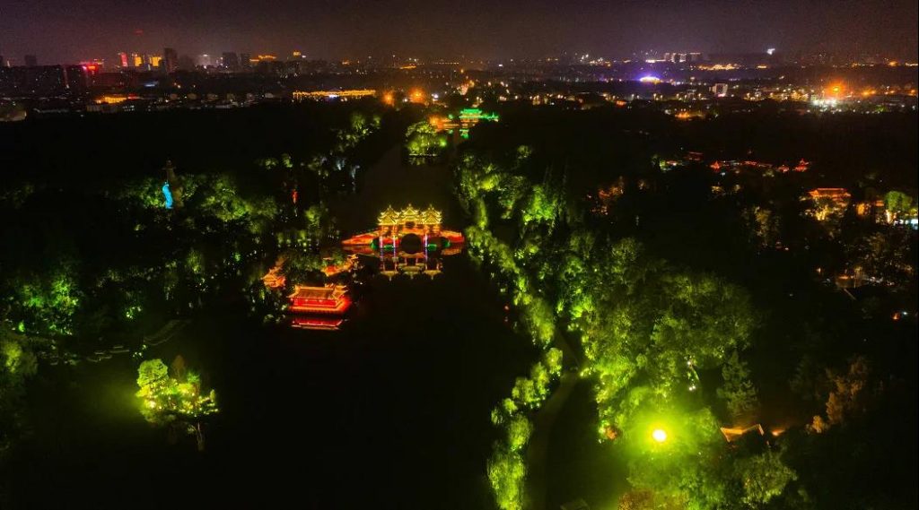 “煙花三月、春江花月、商胡云集、云想霓裳、二分明月”等,十大圍繞唐詩主題展開的劇情節點,叢林全息詩畫卷、沿途行浸賦詩演藝、行舟小橋流水、全息飛瀑對酒當歌、云霧繚繞五亭橋、裸眼3D商胡云集、AR體驗互動融入、花車花船競彩巡游、孔明燈下水幕大秀、夜市千燈照碧云,等眾多意境場景及應用,將景區各大主要景觀景點映入畫卷,展開一副穿越千年的光影詩畫,領略大唐時代中的“天下之盛,揚為首”。