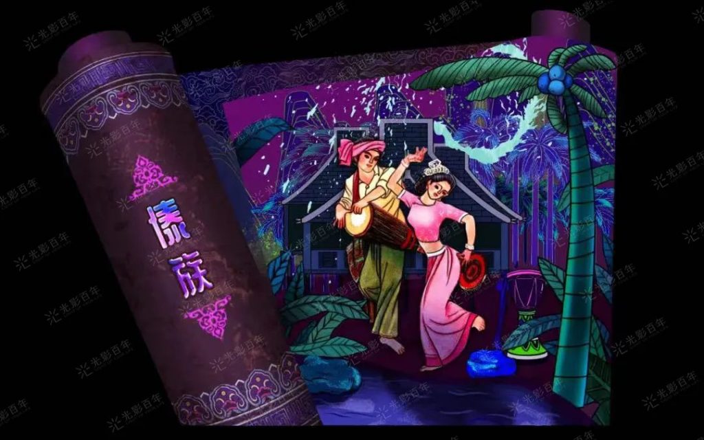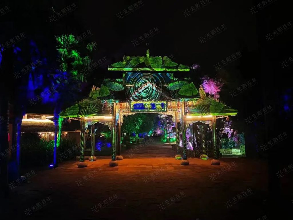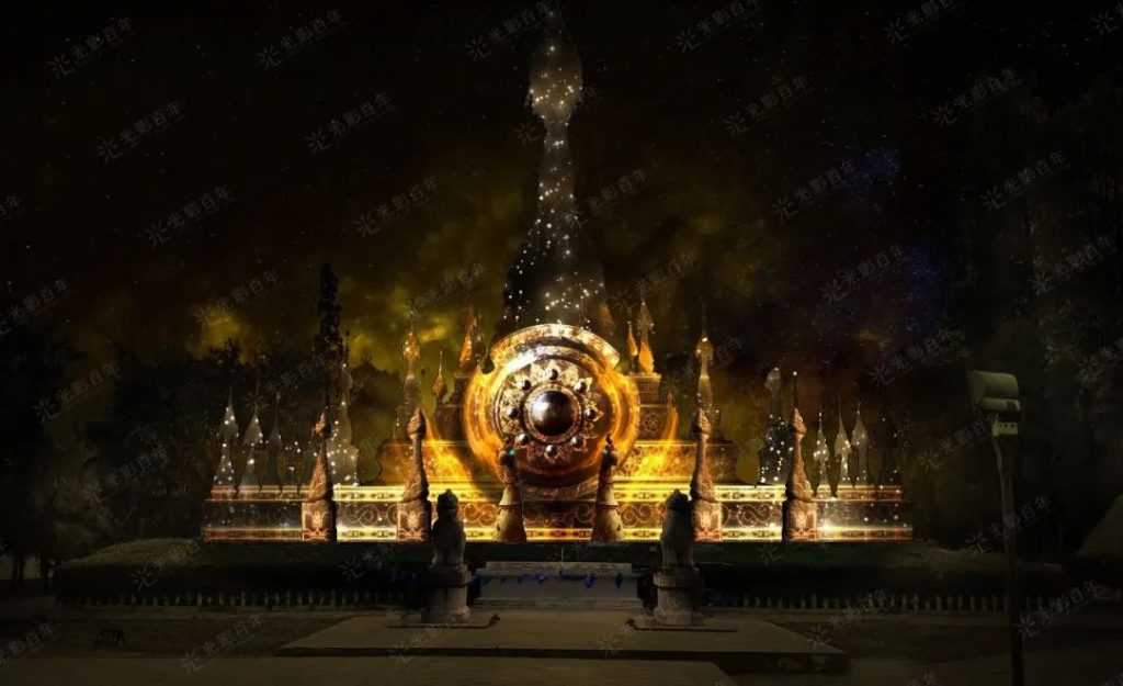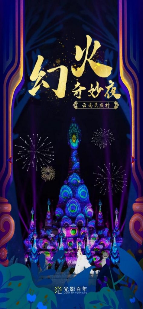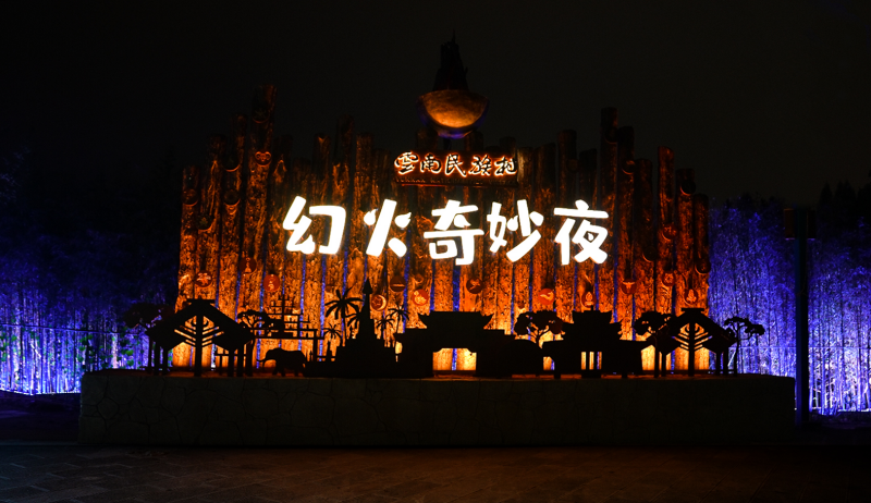 以“流光溢彩夜更美”夜游活動作為景區提質增效的突破口,同時為迎接到來的聯合國《生物多樣性公約》第十五次締約方大會(COP15)。在昆明市委、市政府和云南民族村度假區黨工委、管委會的高度重視、大力支持下,數字創意團隊 深圳市光影百年科技聯合北京鈦坦光魔視覺效果科技,將“再造一座夜間民族村”,打造多元民族文化光影夜游樂園——《幻火奇妙夜》。