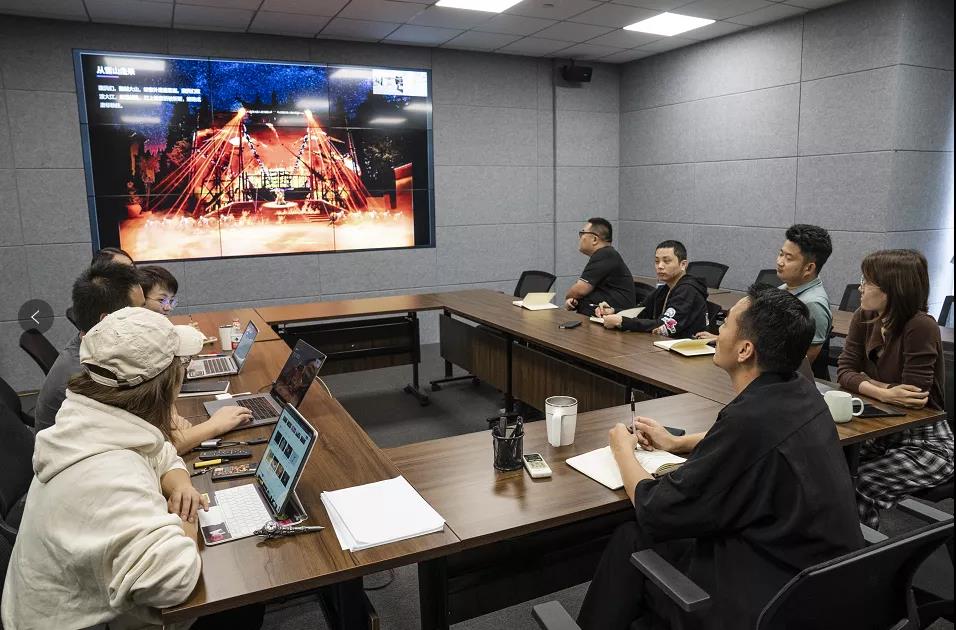 “極具挑戰的任務,一場500畝的精彩的行浸式夜游;需要各部門,包括燈光、舞蹈、演員、音效等密切配合。”——總控調試組