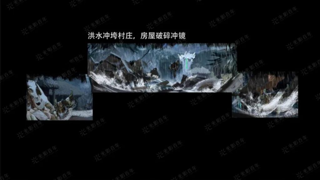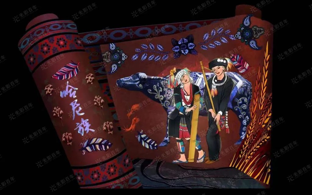 “如何總結云南整體的民族多樣特性,同時挖掘其中各民族的文化特色元素并平衡民族之間的文化表達?如何將故事與載體結構做結合,既能講明白故事又需要展示極強的裸眼立體視效及舞蹈演繹?這是都是我們的挑戰。”——美術設計組