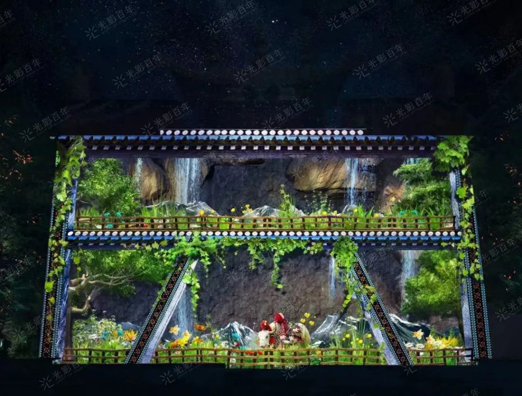 跨民族、跨時空的神秘穿梭之旅靈感從何而來?孔雀部落,神魚部落、神龍部落、耗牛部落,這些遠古傳說是如何串聯并與觀眾娓娓道來?令觀眾稱贊連連的舞美光影大秀是如何設計的?影視要求級別的制作幕后又是什么實況?從技術到呈現,我們克服了哪些困難?下面,小百年這就給大家一一解答。