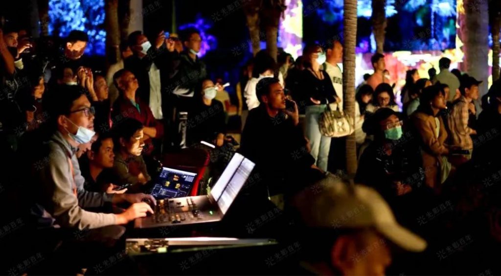 每場大秀、每項節點應用,其中的影像、機位、視角、線圖、造景、燈光、演員、舞蹈、音響、煙霧,等眾多元因素,都經過數不盡的踩點、調整、溝通、走位、測試、聯排…最終形成調整出一套可實現整體控制的、滿足舒適歡樂體驗感的觀眾節目表總控系統。相信在這樣一體化的設計中,觀眾一定能更流暢更沉浸的體驗這忘我的特色民族大狂歡之旅!